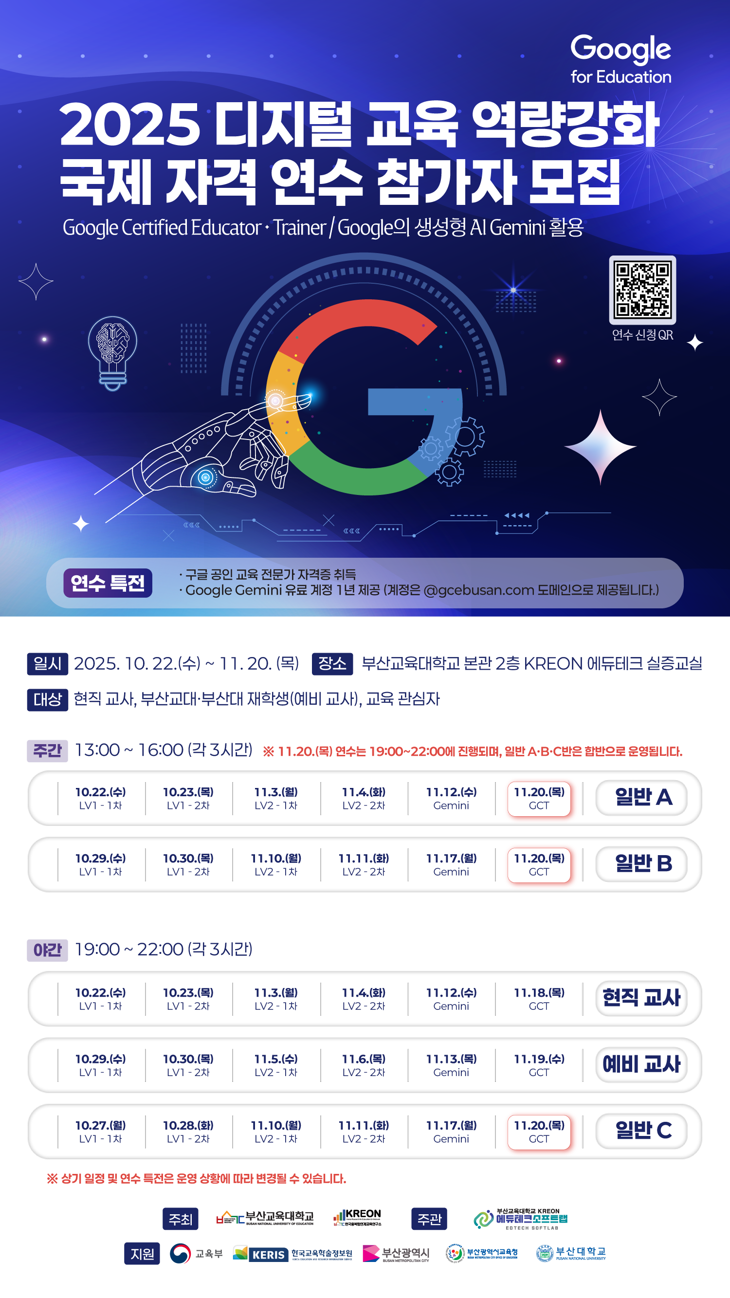 - Google Gemini 유료 계정 1년 제공 (계정은 @gcebusan.com 도메인으로 제공됩니다.)