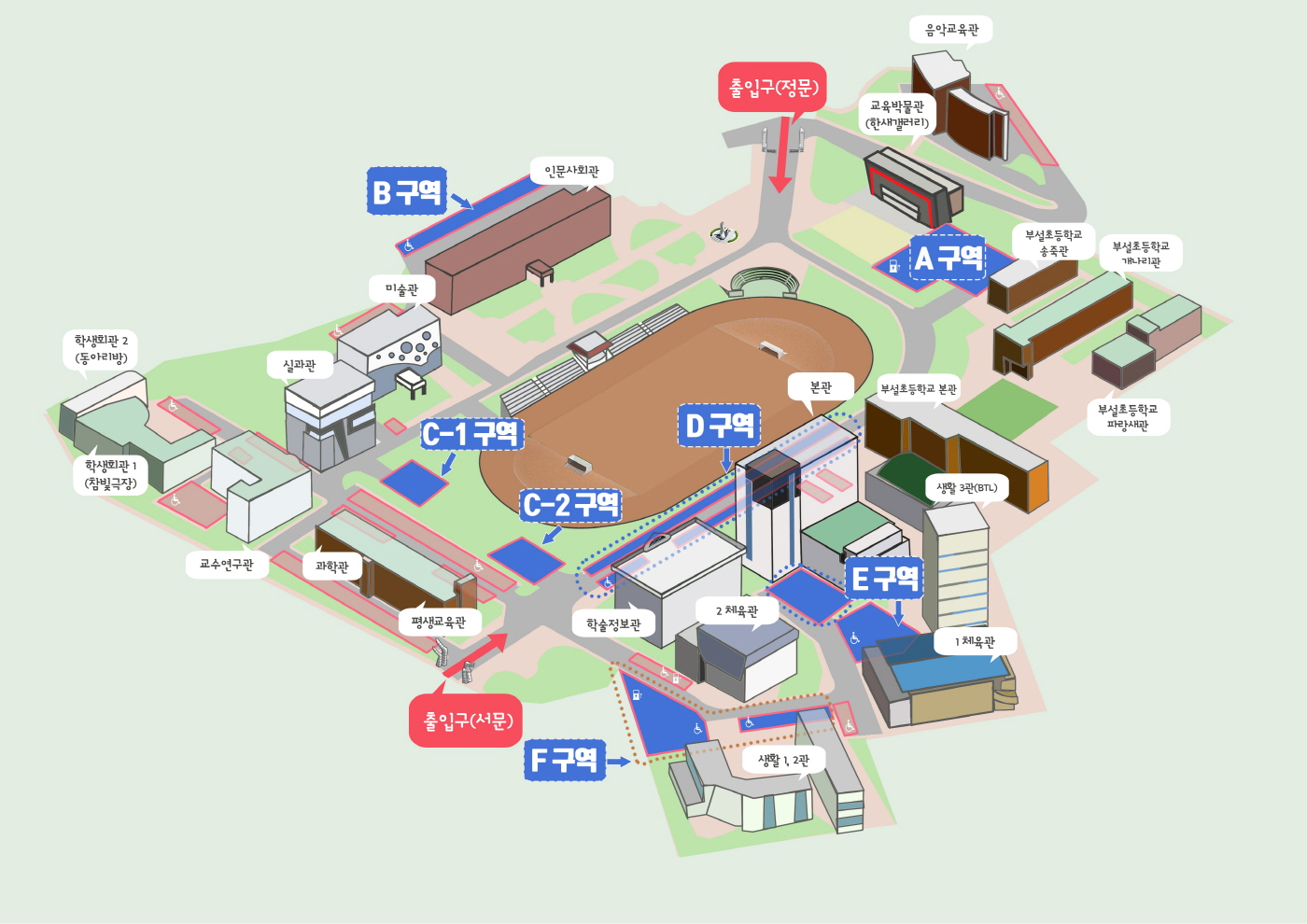 직원, 교원, 조교, 강사, 학부생, 대학원생, 평생교육원 회원, 교육연수원 회원, 외부인
